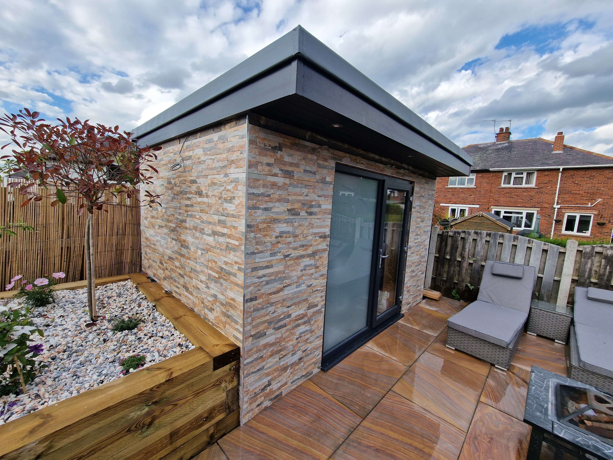 The client approached us looking to maximize the potential of their rear garden by adding a versatile garden room and a low-maintenance social area. They wanted a building that didn’t just look like a shed, but felt like a permanent extension of their home’s living space.